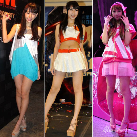 2012年5月20日,上海,5.20(我爱你)派对。陈冠希旧爱谢芷蕙走穴粉嫩装扮迷你裙大秀美腿。