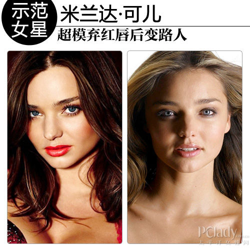 米兰达·可儿一直是“性感超模”的代名词,性感的红唇妆也是她惯用的妆容之一。艳丽的唇色搭配上挑的眉毛,呈现出可儿性感妖娆的一面。可在看看淡妆亮相的她,虽然五官还是一样深邃立体,但是失去红色点缀的唇妆让可儿的超模气场尽失,这样的造型你还会觉得她是国际顶级超模么?