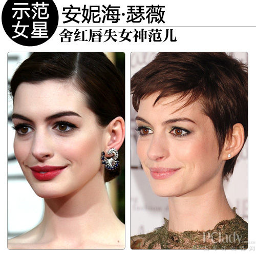 一直有“最美公主”之称的安妮·海瑟薇也是常以红唇亮相的,也是少有能把红唇妆演绎的女神气质十足的女星之一。清透的粉底打造出无暇透亮的肌肤,让红唇妆非常的突出。深邃的眼妆,优雅的红唇都衬托出她那高贵优雅的女神气质。而裸色唇妆造型的她,虽然整体造型还是很不错的,但妆容看起来则显得有些平淡,那股优雅高贵的女神气质也荡然无存。