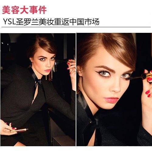2013年5月,YSL圣罗兰美妆将重新登陆中国市场。第一家专柜将登陆 上海 ,同时品牌今年春夏推出Baby Doll系列,邀请当红的英国名模Cara Delevingne担任代言人,有如娃娃脸庞的Cara,玫瑰色的唇彩,以及60年代的加长眼线,穿上Hedi Slimane设计的Saint Laurent贴身洋装,天使脸孔魔鬼身材,势必会让YSL彩妆再次翻盘,造成讨论话题。