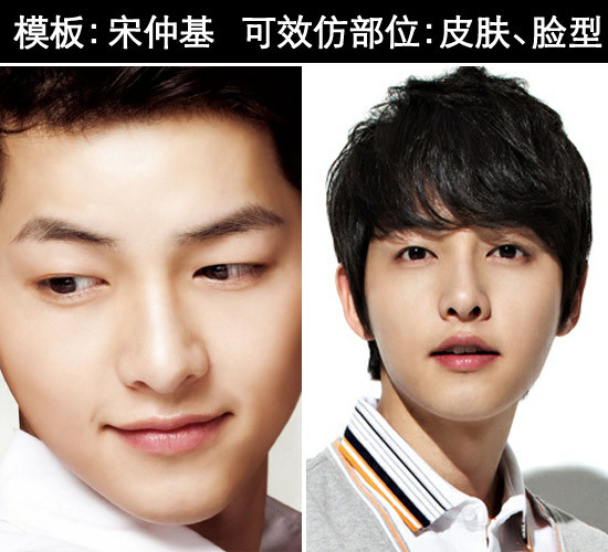 整形专家指出,白嫩皮肤不再是女人专利了,男性拥有干净的皮肤会给女人一种踏实和温暖的感觉。在一个调查问卷中,宋仲基凭借着白嫩而干净的皮肤,被选为“女人最想与之共度圣诞节”的男明星第一位。此外,宋仲基的下巴很小,刚好符合追求小脸的趋势。宋仲基让很多韩国女性感受到另外的男性魅力,随之韩国很多男性开始青睐小脸。它还在“韩国整形医生眼中的最完美的脸型”评选中夺得第二名好成绩。