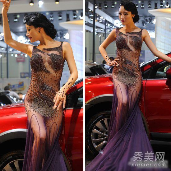 性感车模李颖芝亮相某车展 身着价值过亿的镶钻性感透视装亮相,长噶扎起提着薄纱裙摆,宛若女神。