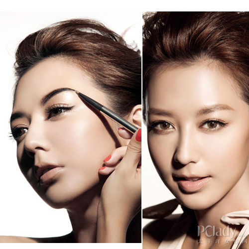 上扬的粗眉能拉长脸部线条也让五官显得更俏丽。眉头要淡而粗,从眉毛中部向眉尾描画时,应该将勾画的线条慢慢减细,并且顺着眉型微微上扬。方形脸不适合过于生硬的粗眉,否则会看起来很MAN。