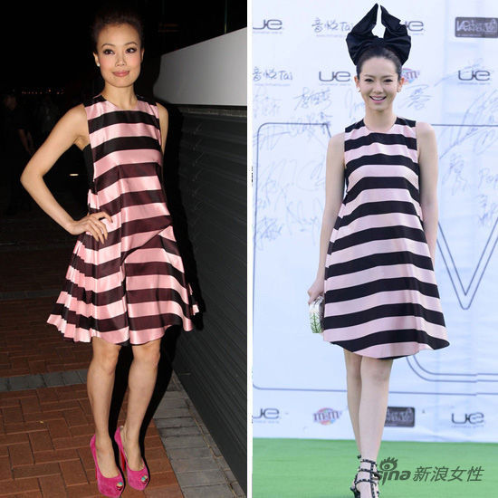 容祖儿[微博]VS话题女星戚薇[微博] Christian Dior[微博]条纹裙谁更胜一筹
