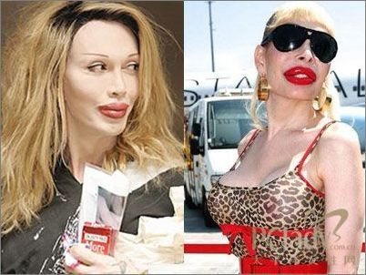 英国艺人乔斯林·王尔德和彭斯有着相同的遭遇,王尔德因整形花费了200万英镑。这位被成为“猫女”的女艺人为了使自己变得更漂亮而不断尝试一系列的整型手术,最后却落了个“整形怪物”的称号。