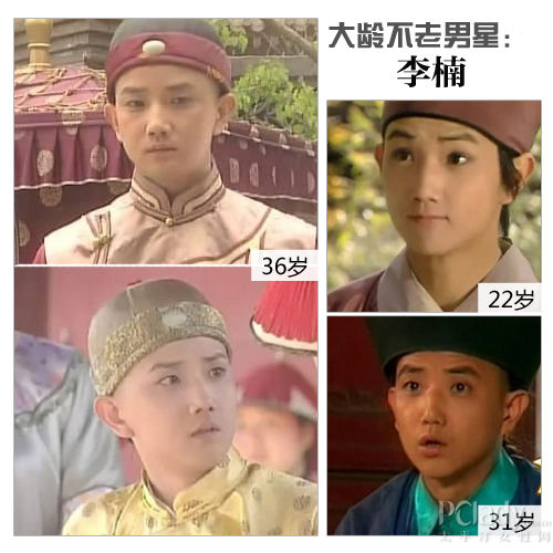 1965年出生的演员李楠,因其面貌与47岁的年龄极不相符而走红。1987年,22岁的他在《红楼梦》中饰演青涩的书童茗烟一角。到了1998年,他继续在《还珠格格》里的青少年太监小桌子时,但当年李楠已经33岁了,娃娃脸的他看上去依然稚气未脱。直至2001年,36岁的他又演了十几岁的康熙,稚嫩的脸庞无任何岁月痕迹,堪称真人版的天山童姥爷。