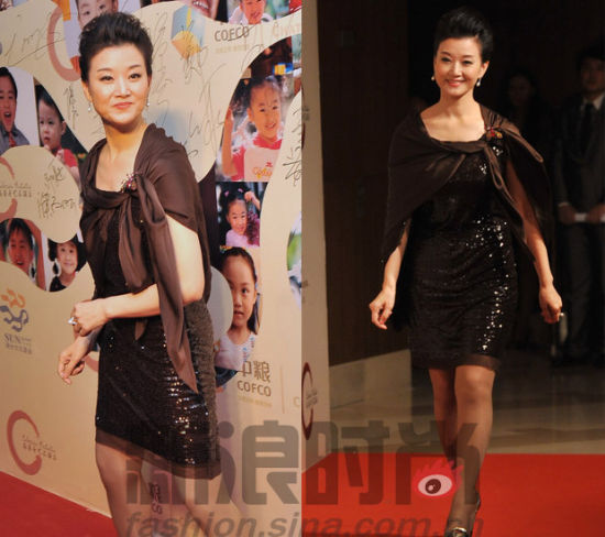 简单的黑色亮片短裙搭配小披肩瞬间凸显了宋祖英的高贵气质。