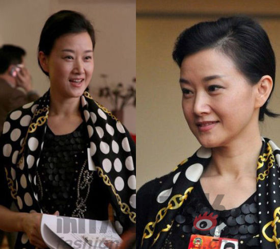 众所周知,宋祖英极其钟爱限量版丝巾,通身的黑白搭配难免会略显单调,巧妙搭配的大波点丝巾成为全身的亮点,不仅显得干练脱俗更显得潮味十足。