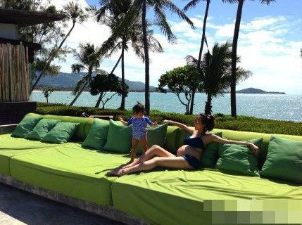 日前收工的陈浩民带妻女海边度假,共享家庭时刻。而已经再度怀孕的蒋丽莎更是挺大肚穿三点式,尽显孕期女人性感一面。