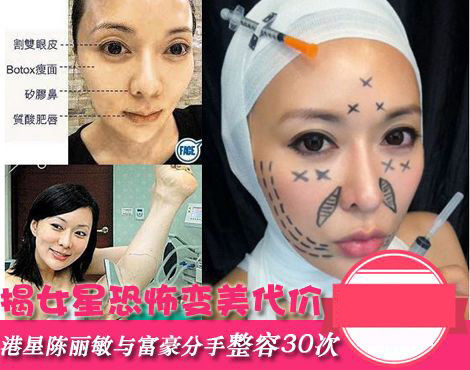 现年40岁的落选港姐陈莉敏从不否认整容的事实,并承认曾前后整容高达30次。虽然陈莉敏坦然面对整容并大方分享心得,仍然难免成为别人的谈资,近日她做出回应,称自己是“医美前线的勇女”,自己的脸“也许有点假,但心比毒舌族真”。陈莉敏现在是香港无线电视台的艺人,她曾在受访时自曝整容高达30次,几乎每星期都要尝试一种整形疗程,抽脂、打botox、二氧化碳拉面皮等。