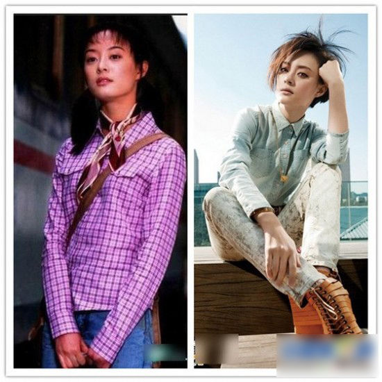 又是活生生的土妞变模特!虽然刚出道时候的她也很可爱,不过脸孔没变换上牛仔衬衣牛仔裤的孙俪和10几年前的她判若两人。