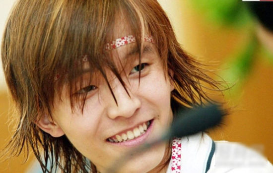 刚出道时期的欧弟,就是一名高中生的样子,容貌变化不是很大,只是整个人变胖了好多,还有双眼皮应该是后期做的吧!
