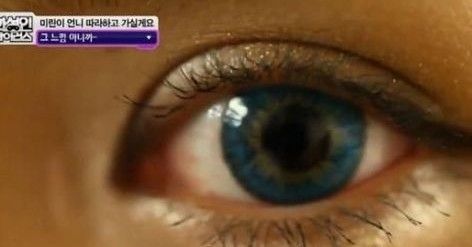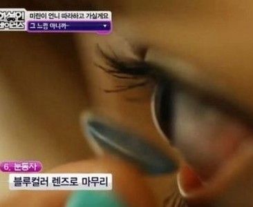 蓝色的美瞳隐形镜片是必不可少的一环,瞳色的不同是亚洲人跟可儿的最大差别之一。