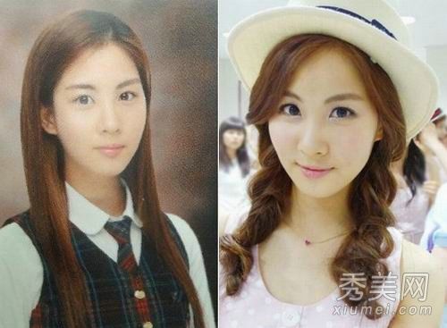 导读:黄美英的差距还是很大的,特别是脸型,以前就是个国字脸,下巴也没现在这么尖,鼻子好像也动了,整个脸好像都是“焕然一新”的。秀英的脸型好像差不多,但是鼻子变化很大,还有眼睛,整体来说还是认得出来的。