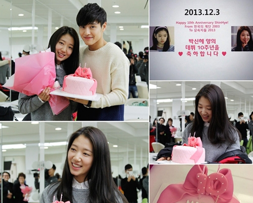 朴信惠出道十周年纪念,《继承者们》拍摄现场庆贺派对,永远的黑色长发,素颜模样好清纯,笑起来时苹果肌很可爱,纯天然美女朴信惠十年前后也就这么美。