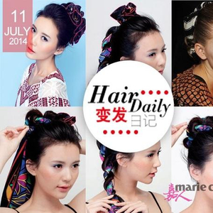 导读:头顶发团是我们能想到的最简单的盘发方式,但舞者般的简单利落太过于单调,不如在盘发中加入丝巾,改盘成花朵的模样。