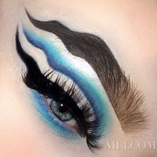 浓妆,淡妆,都背上这种波浪眉型,搞怪气质大力提升,甚至有些歪果仁还把自己的眼线一并画成了波浪形。