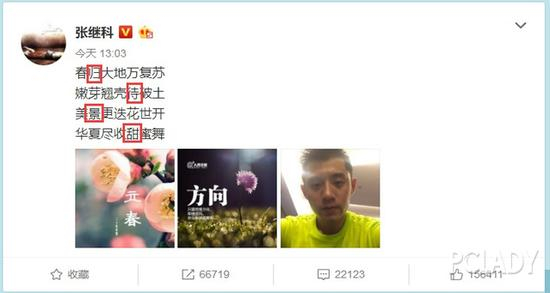 后来张继科又作诗一首,里面同样是藏着“景甜”的名字:春归大地万复苏,嫩芽翘壳待破土,美景更迭花世开,华夏尽收甜蜜舞。”