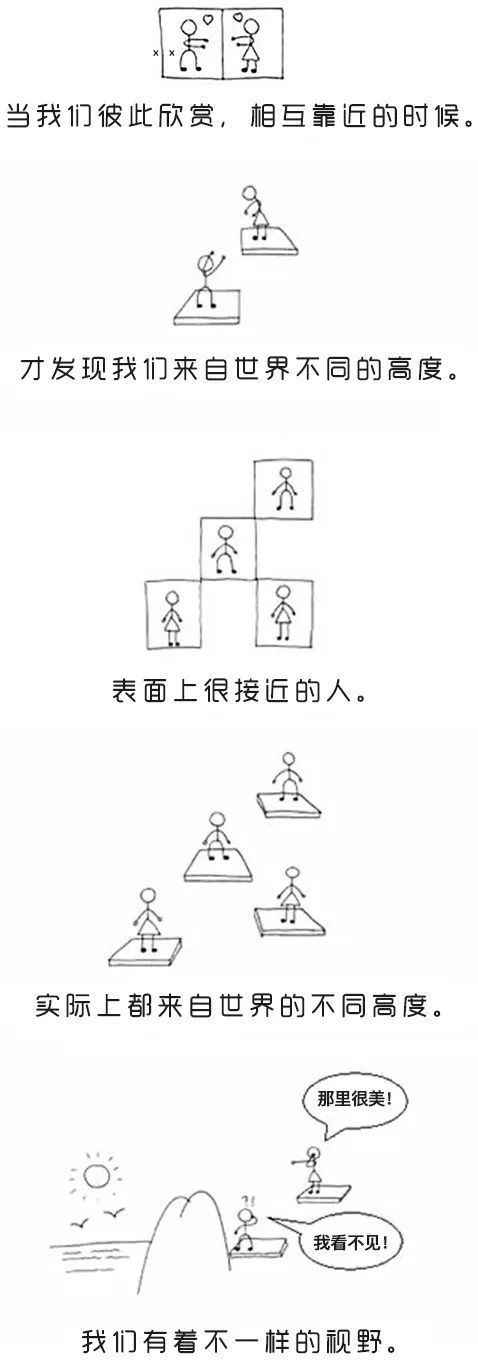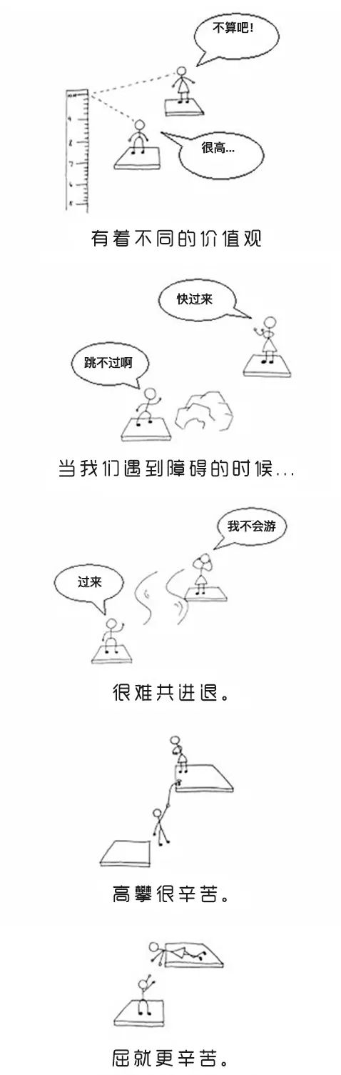 层次不一样站的高度不一样,两个人迟早会有矛盾的,之前有一副漫画图就说的特别好: