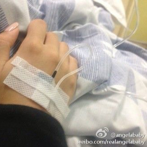 8月31日凌晨,Angelababy在微博晒出两张分别插上输气管及吊盐水的照片,相中的她面容憔悴,更贴上退热贴,旋即引来不少粉丝留言慰问,Baby9月1日出发到青海西宁,是为“嫣然天使基金[微博][微博]”担任爱心大使,展开青海站慈善探访行程及拍摄宣传片。