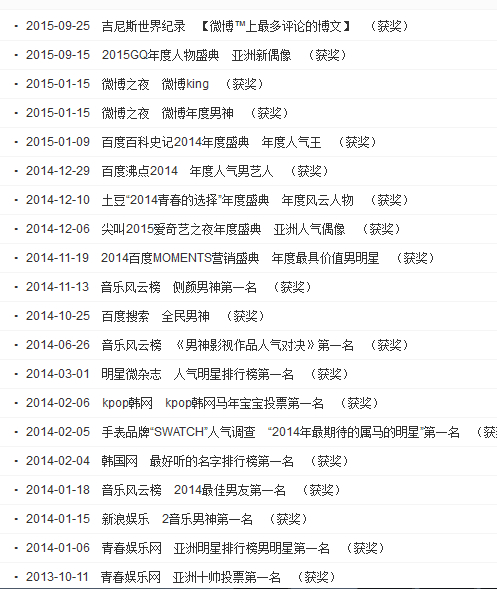 鹿晗:2014年4月20日,个人微博420万评论创新记录。7月20日,个人微博单条评论破千万创微博新记录 。8月2日,鹿晗个人单条微博达1314万,七夕1314万封微博情书再创微博评论新纪录。8月19日,吉尼斯认证鹿晗单条微博13,162,859条评论创吉尼斯世界纪录,成为中国中文社交媒体的第一个对外公布的吉尼斯世界纪录。