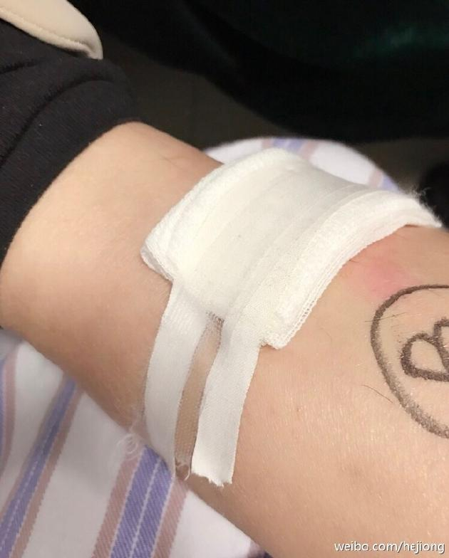 10月31日晚,何炅[微博]通过微博报平安,写道:“录节目受了一点点小皮肉伤,大家为了安心还是让我来医院紧急处理一下,小事小事,别担心啊!现在回去接着录啦!谢谢长海医院的大夫护士啦!”并上传用纱布包扎的伤口照,从照片看出,伤口已经处理被包扎好了。