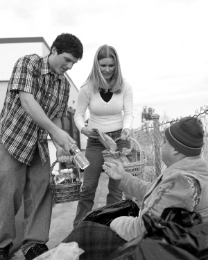 费城有4000多名无家可归者,常年露宿街头,一些慈善组织会不定时地在公共场所派发食物给他们。