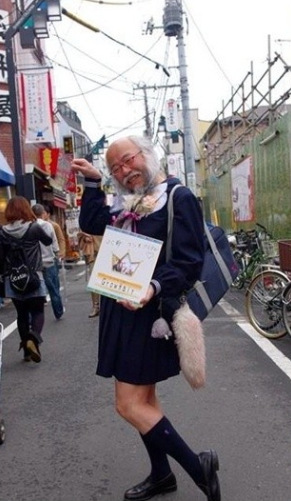 导语:据台湾东森电视台网站报道,萝莉(Lolita)一词从小说而来,已渐渐地成为日本的一种次文化,用来表示约10至16岁的青少女,也延伸出“萝莉风格的时装”、“萝莉控”、“萝莉情结”等词汇,但最近日本出现一位62岁的大叔萝莉,身穿水手服和少女一起卖萌,还用茂密的胡子绑成小辫子,他声称要给日本带来一些生气,现在已红遍日本网络。