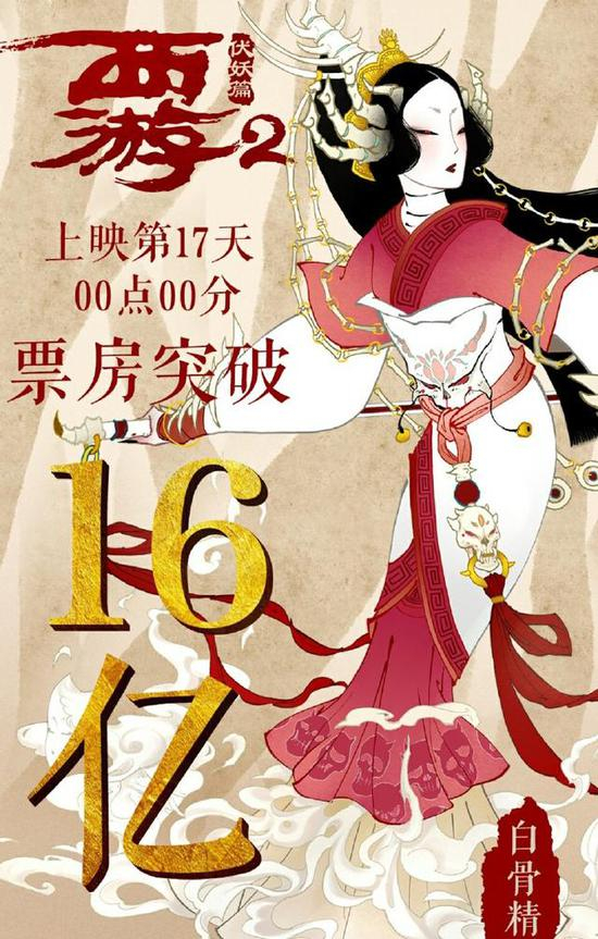 由香港著名电影人周星驰监制、鬼才导演徐克联手打造的西游经典电影系列之《西游伏妖篇》,在2017年春节档上映,首日3.55亿元票房创下中国电影史单片单日票房纪录,最后更以全国高达16亿的票房完美收官。