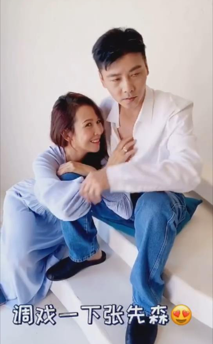 拍摄期间,她不断调戏老公,扑在老公怀里,给老公扣扣子……夫妻互动十分亲密,狗粮撒了一地。