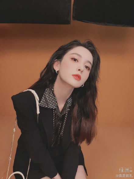 古力娜扎晒美照 黑色西装搭配卷发造型气场十足