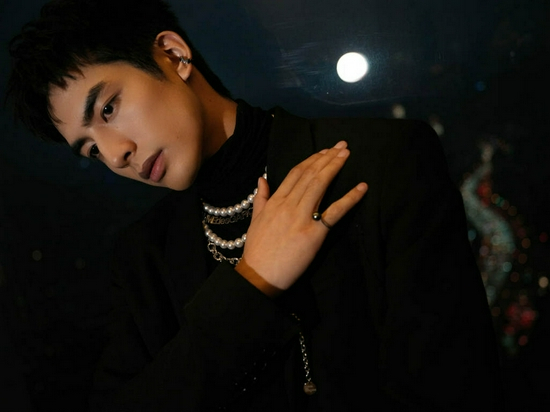 宋威龙叠戴珍珠项链贵气十足 全黑套装衬精致浓颜