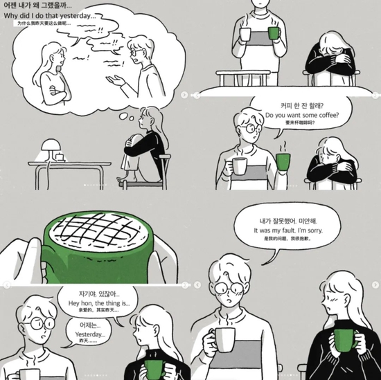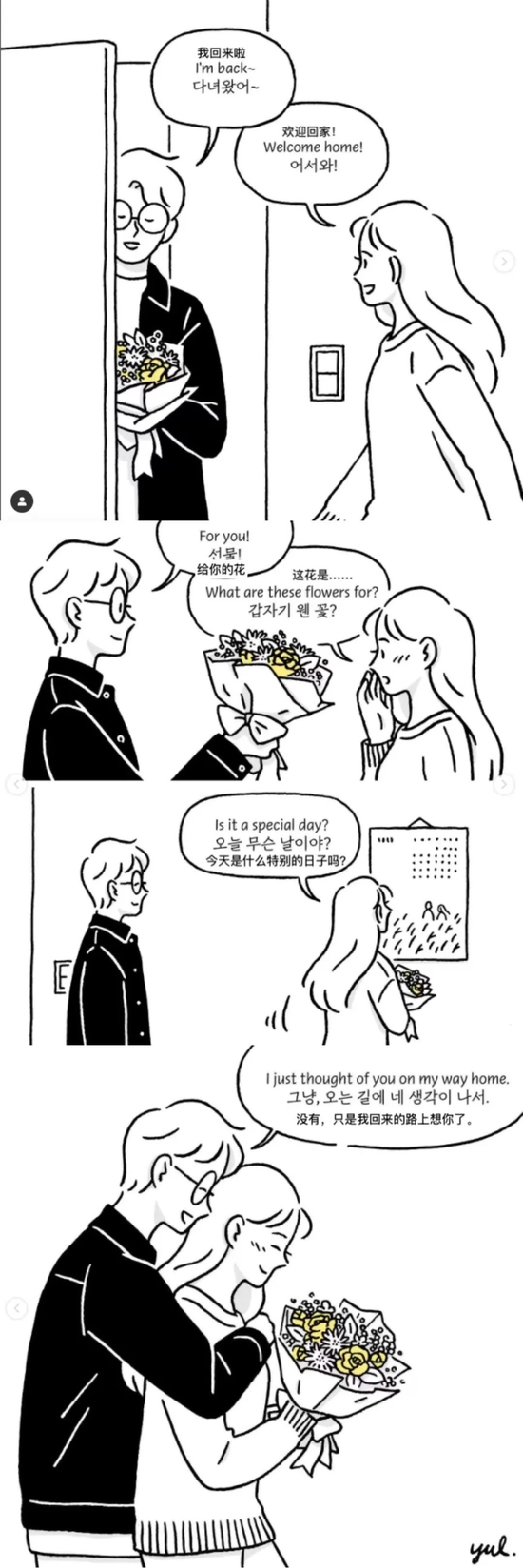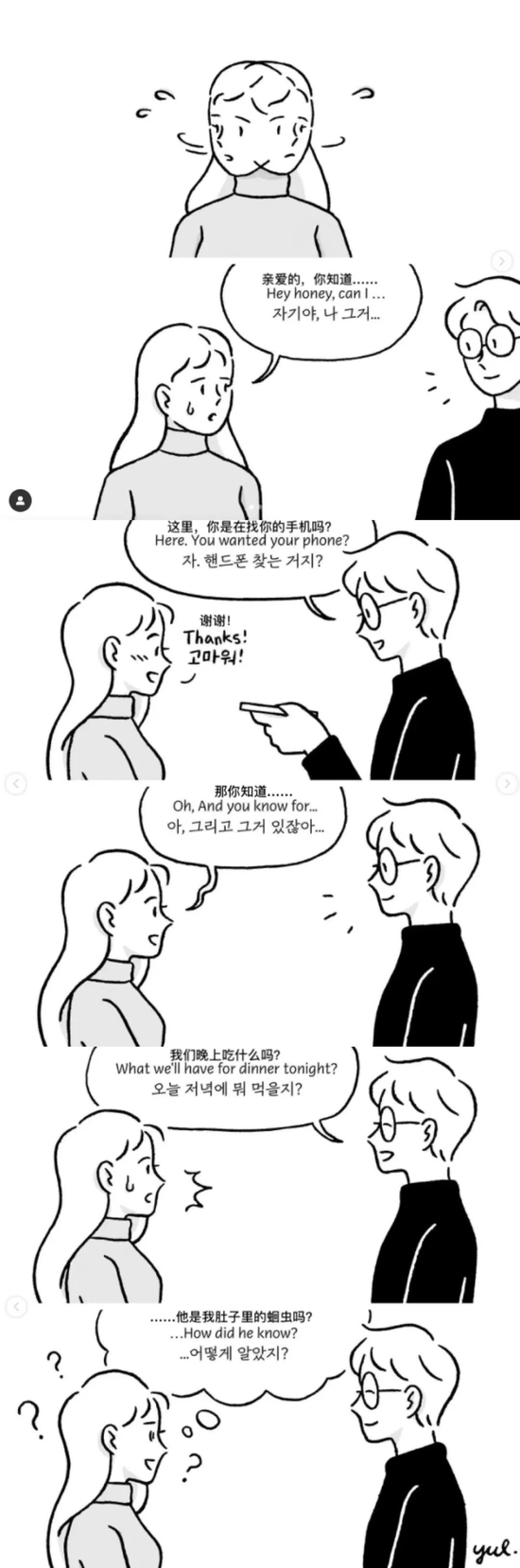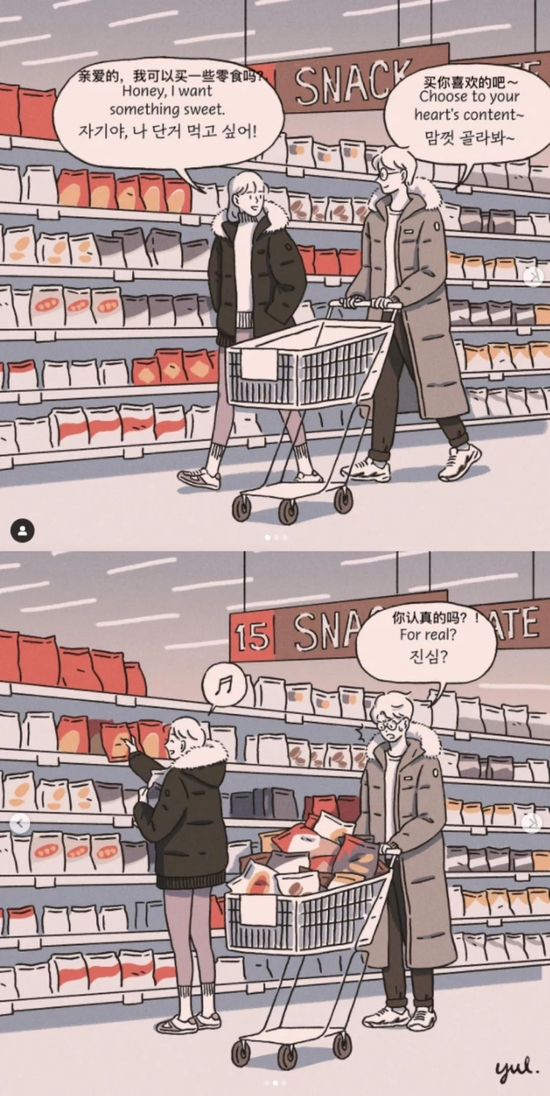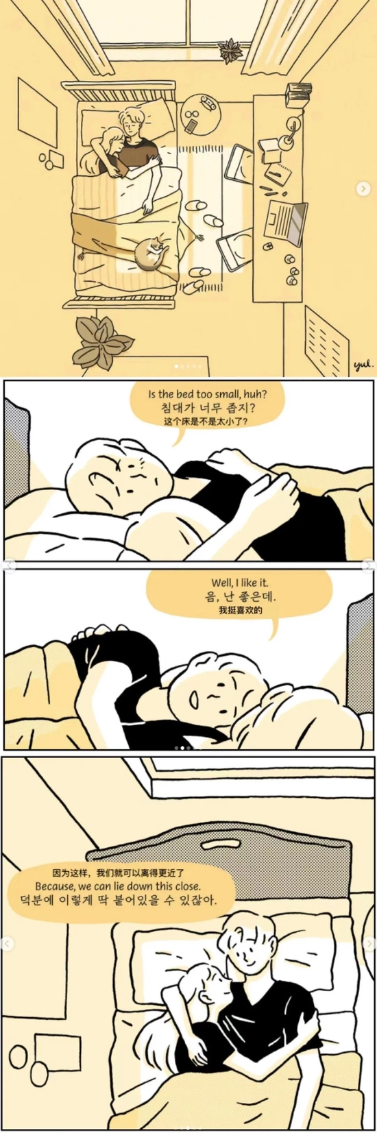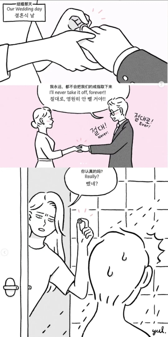 这些‘不太正常’的夫妻相处日常,都来自韩国漫画家yulri。她从19年开始记录自己的婚姻生活,并火速吸引了二十多万粉丝。