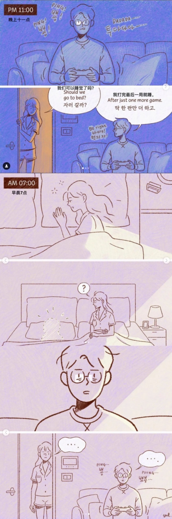 比如生活节奏不同步,说好了11点打完最后一局就睡觉,结果不出意外打了一个通宵的游戏。