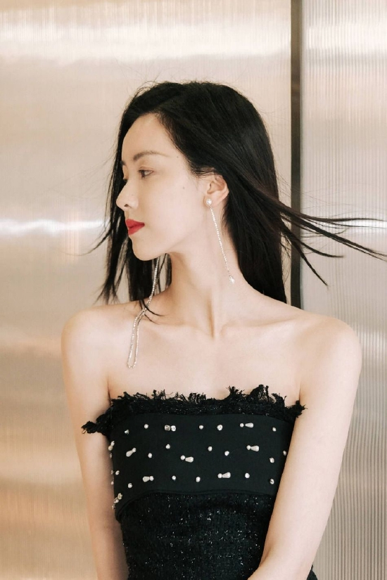 陈都灵穿抹胸黑裙拍大片 秀曼妙身姿肌肤白皙吸睛