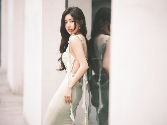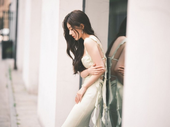 赵露思穿薄荷绿吊带露背长裙 显身材曼妙不失俏皮