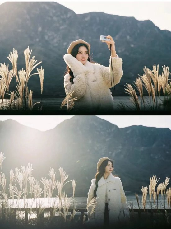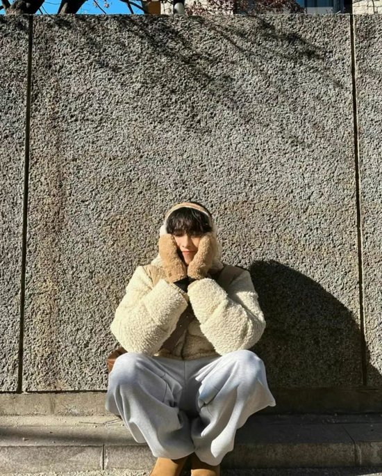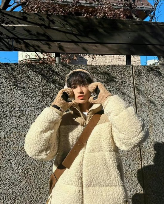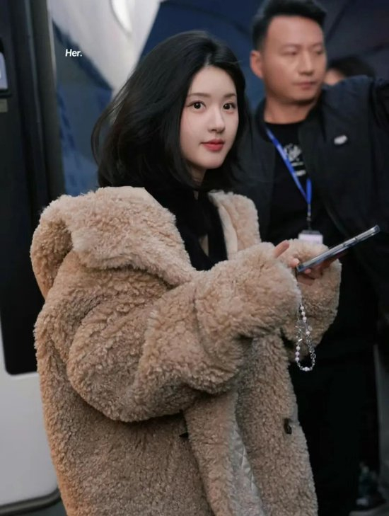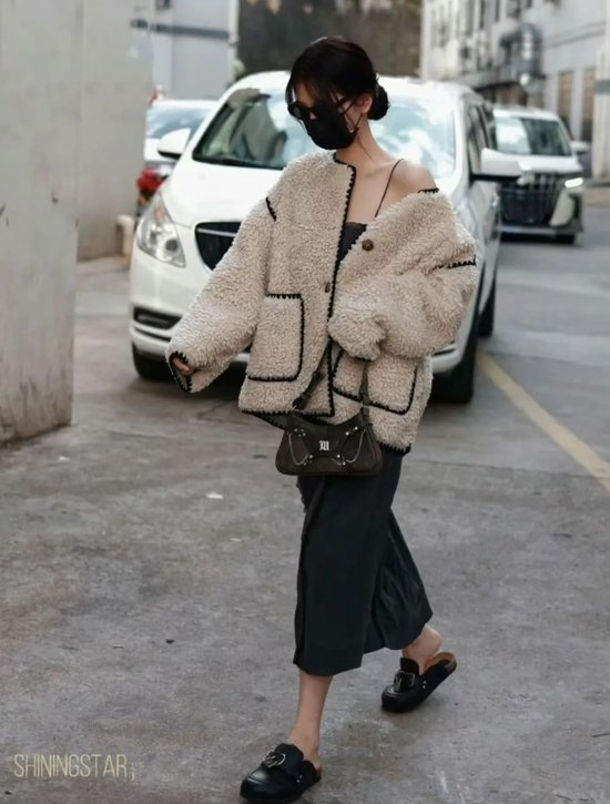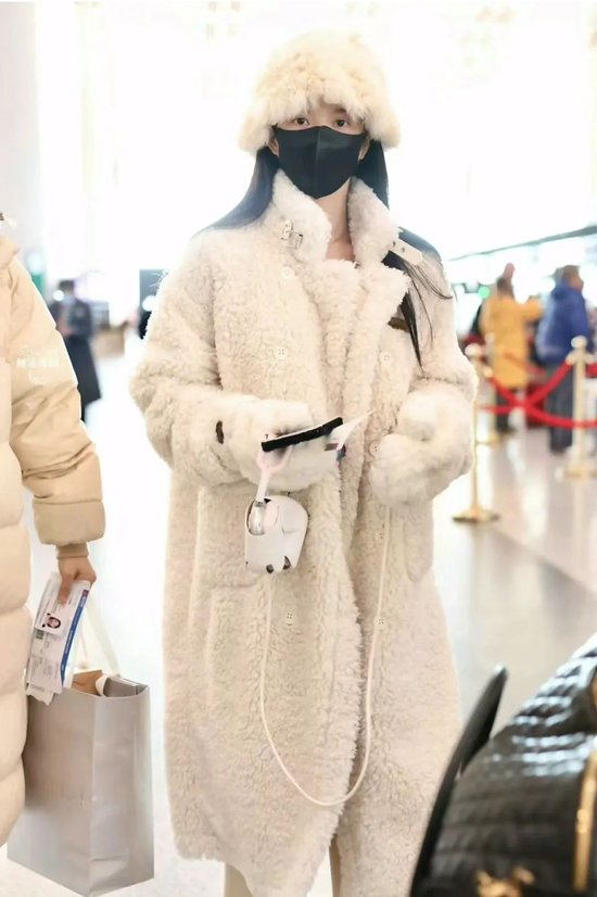 刘些宁的这套“毛毛穿搭”可以说是毛毛中的top没错了,米白色的羊羔绒非常温柔娴静,搭配毛绒帽和手套抗住所有寒冷毫无问题。