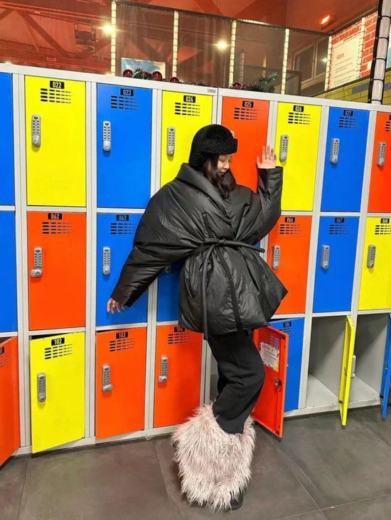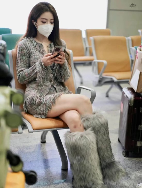 有了毛茸茸帽子,也不能忘记毛绒绒鞋哦。这种模拟生物jiojio的毛靴,穿上后立刻气场一米八,并且足够宽的靴尾能让腿看起来更细。