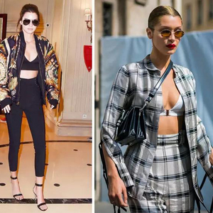 如果你是保守女孩,觉得大面积的露出bra不好看,那么像Kendall和Bella这样穿一件Croptop隐约露出一点蕾丝边,撩人于无形之中。