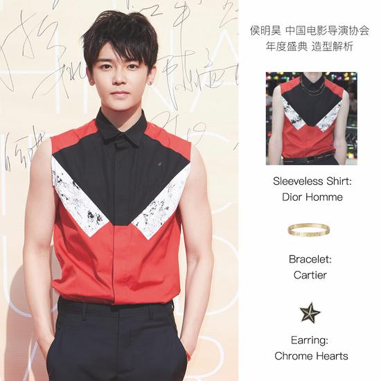 电影节好忙!4月22日,侯明昊身着Dior Homme无袖衬衫、Lanvin西装裤配以Cartier手环出席第八届中国电影导演协会年度盛典,聚光灯下完美诠释出其运动潮男时尚感。4月23日,再度征战北京国际电影节闭幕式红毯,以一袭Gucci 2017正装搭配Dior Homme皮鞋吸睛无数。