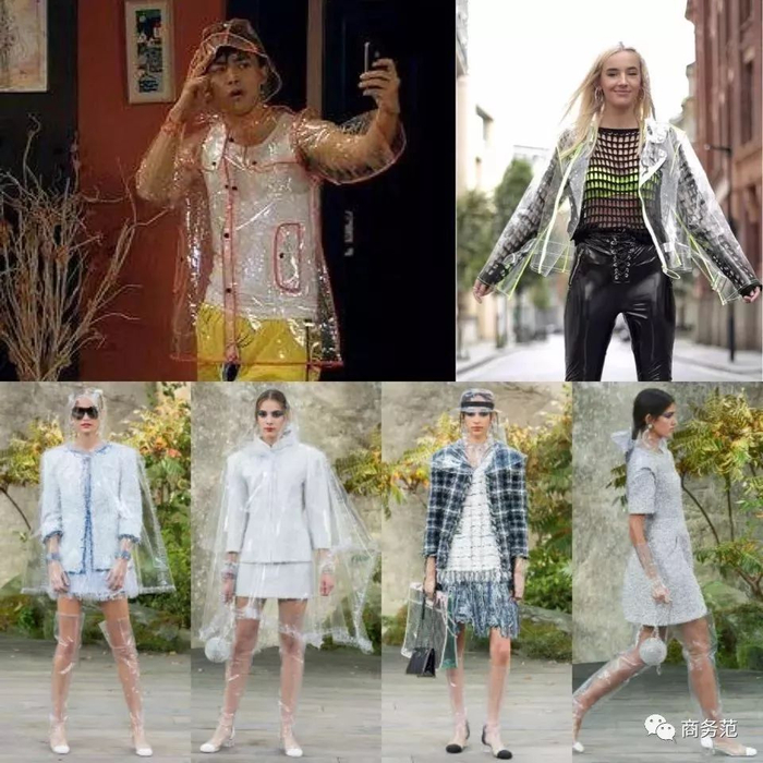 这可不,2018年引爆MiuMiu、Chanel等一线大牌的透明PVC材质,印证了张伟前卫的嗅觉。穿上透明雨衣和透明鞋子,你就是Chanel秀场上最个性的模特