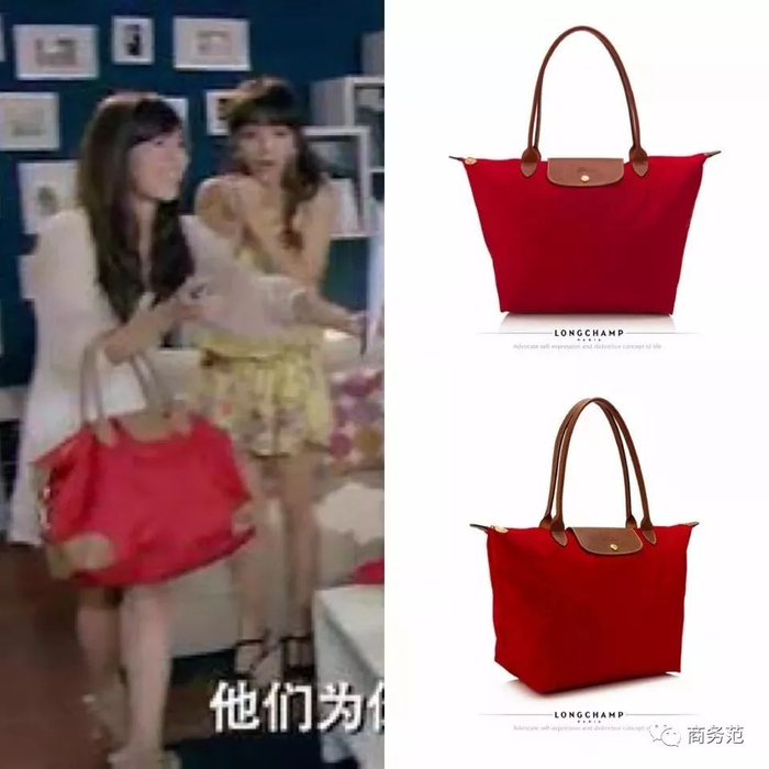 当然,剧中也穿插着一些日常品牌款式。美嘉平时会拿着(疑似)Longchamp的饺子包↓↓↓