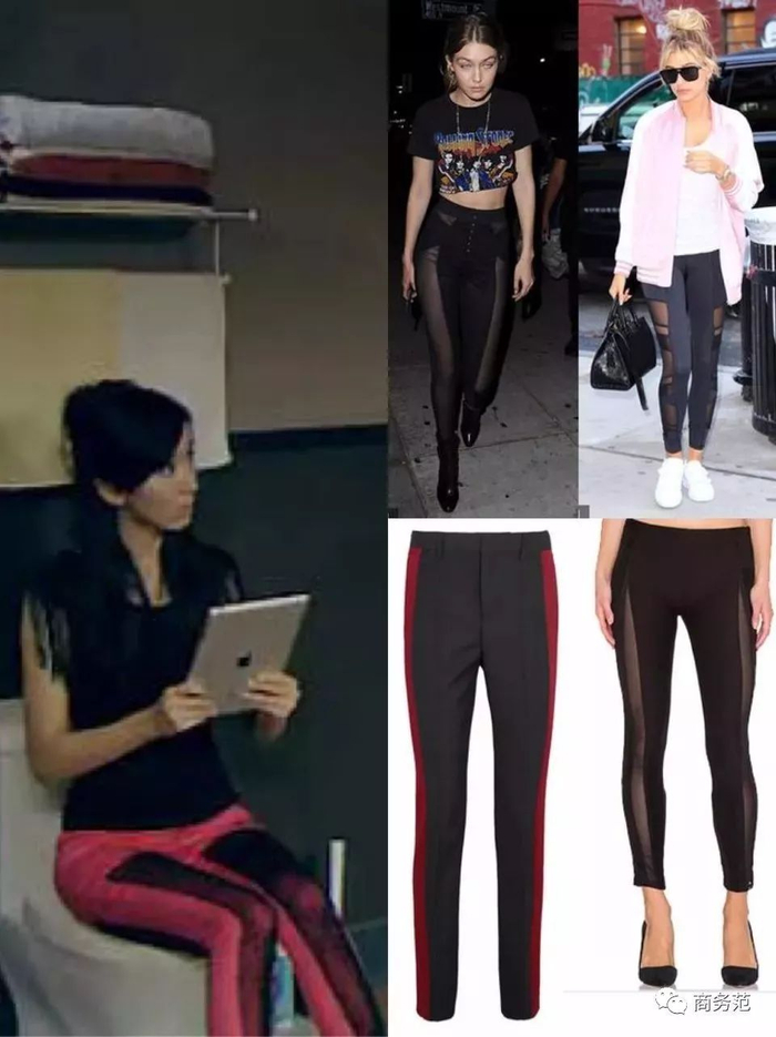 同样跟网红撞衫的,还有一菲。这两年为了瘦大家什么穿法都想出来了,网红超模Gigi Hadid都爱穿的心机阴影显瘦裤,一菲早就轻松Get√了