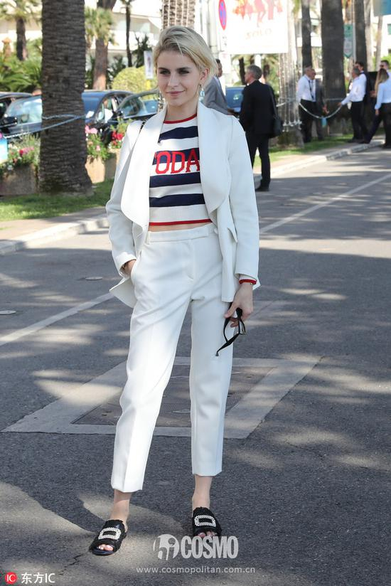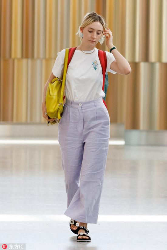 94年实力派演员西尔莎-罗南最近演绎过一双鞋面上有钻石镶嵌的运动凉鞋,让原本有些率性的鞋款多了一些少女俏皮味道。