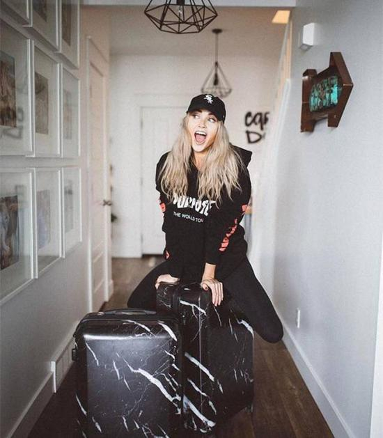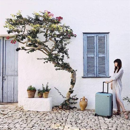 如何拍出Ins风格的照片?首先你要有一个大理石纹做背景!那么如果你有一个大理石纹的行李箱呢!