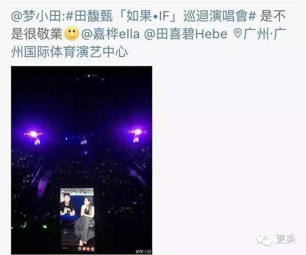 事情经过是这样的,24日田馥甄(Hebe)的巡回演唱会广州站结束后,粉丝在微博PO了一张在演唱会上同时看Ella直播的照片。