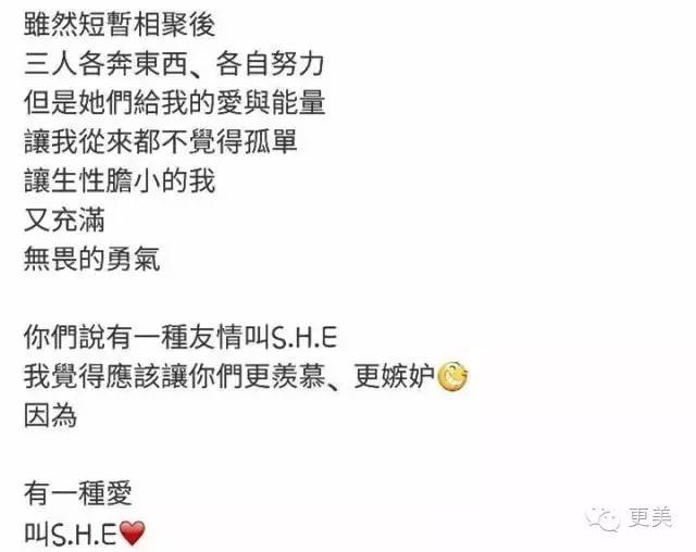 但是SHE这三个女生,就像是涂了蜜糖,三个人甜腻腻的连在一起这么多年。