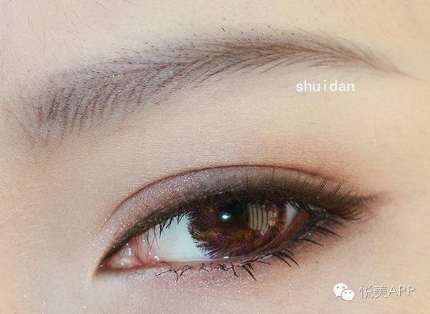 这样粗细的眼线能够遮掩双眼皮的宽度,还能填补瞳仁被遮住的上方,造成瞳仁与上眼缘相切的假象,才会有精神。