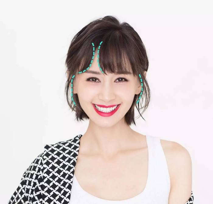 像是很流行的C型刘海,说直白一些就是侧分长刘海、侧分短刘海+烫发嘛,心机就在于在适合你脸型的相应位置形成弯曲