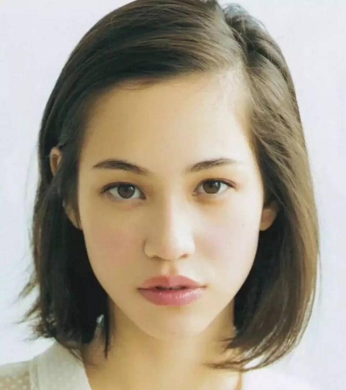 水原希子的脸其实是有一点长的,有刘海会有缩短脸长的视觉效果